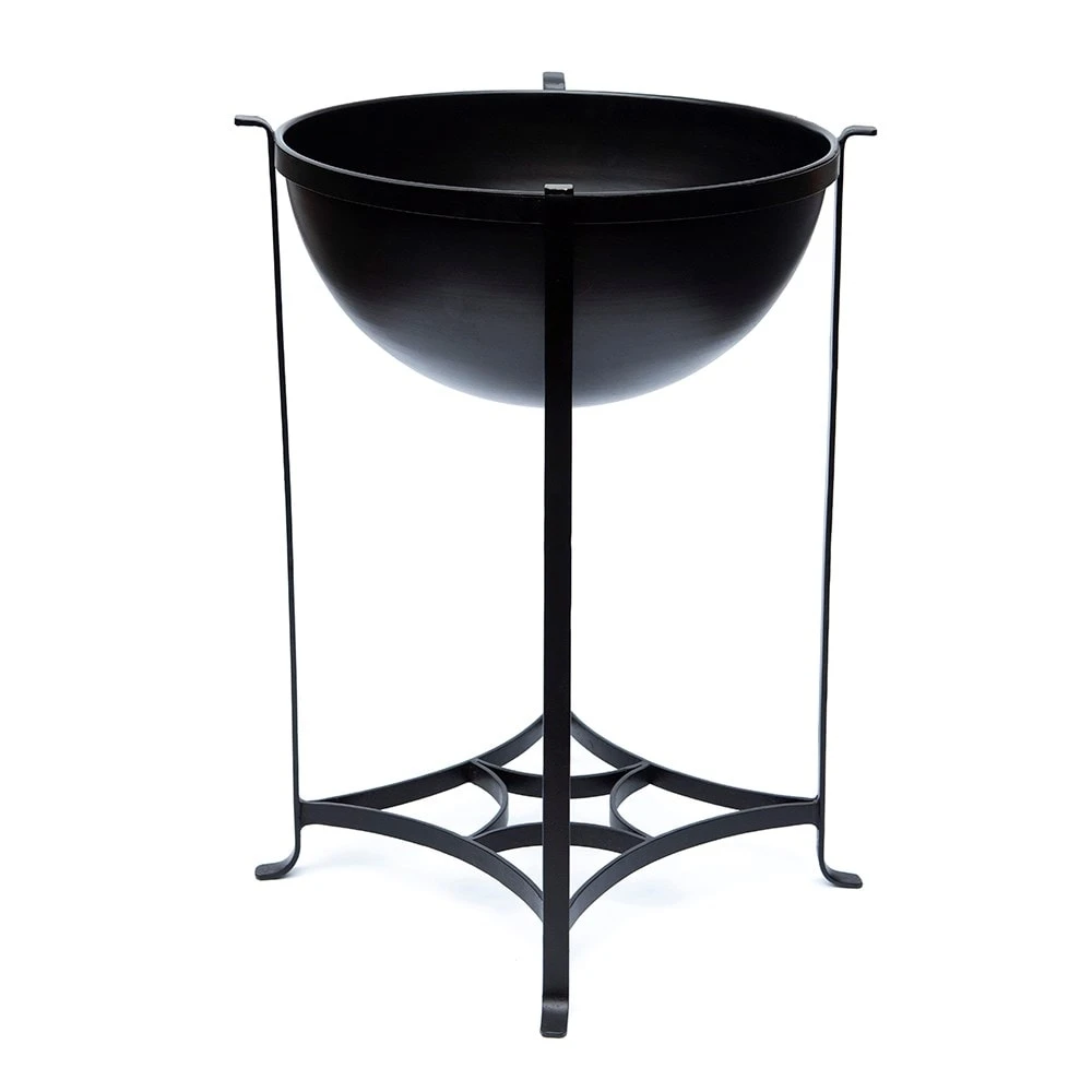 The bowl is made from spun steel coated with fire-retardant paint, the stand from steel bar and the top from solid copper with a rolled edge.