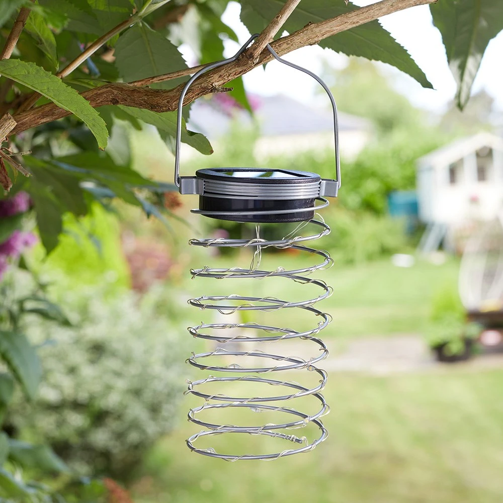 Set of 6 Spiralight hanging lights with a contemporary coiled spring design. Perfect for hanging from parasols, hooks, border crooks, trees and trellis.