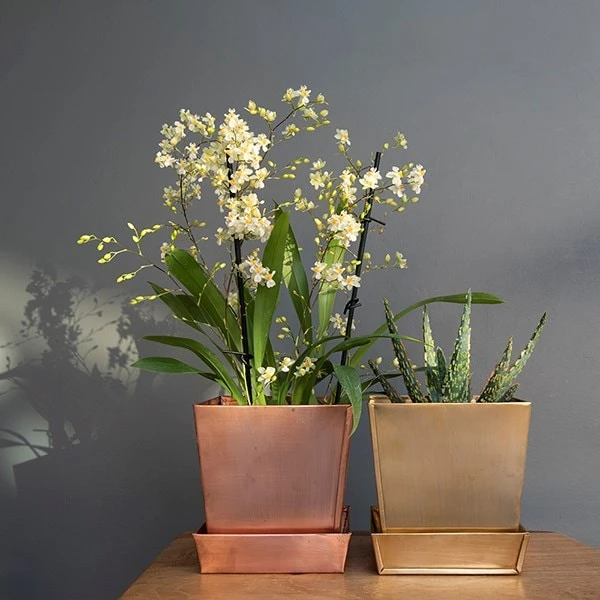 Modern and minimalist, these brushed brass pots make ideal planters for herbs, spiky cacti and lush ferns. Place them in a well-lit spot where the light will play off the satin surfaces to enjoy a sense of sunshine all year round.